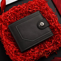 This men’s short wallet features a slim construction with a clean, minimalist design. Built for everyday carry, it provides simple card storage in a compact, lightweight form.